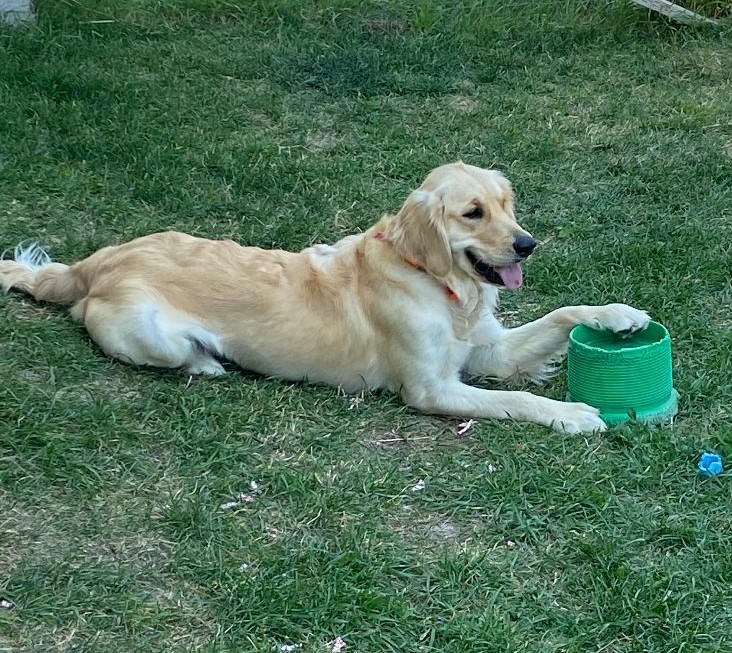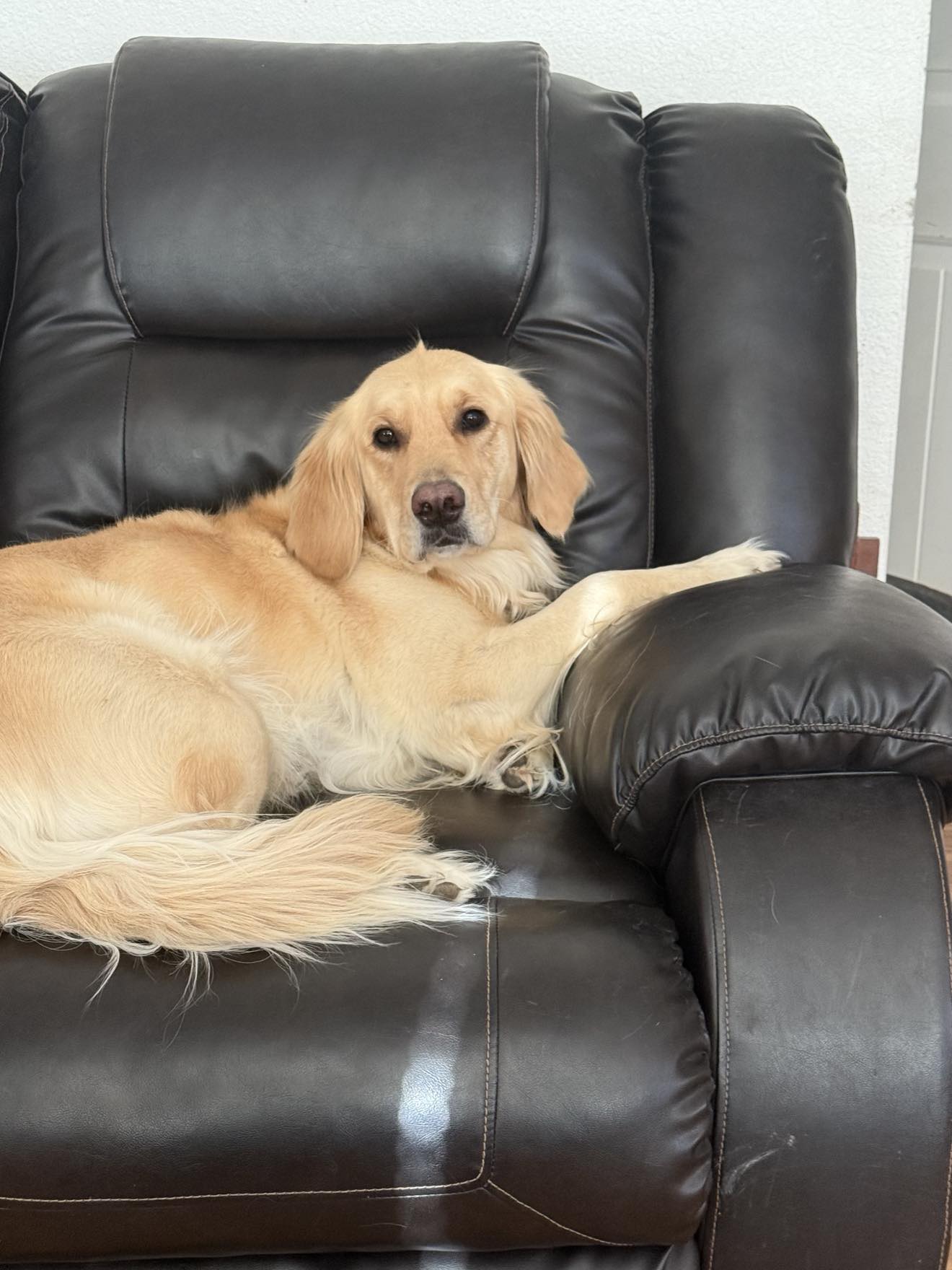 Tilly is his therapy dog. She is loyal, loves everyone, plays will with everyone she meets, great with kids and puppys. She loves to play in the water and if a ball is invalved she is even happier.