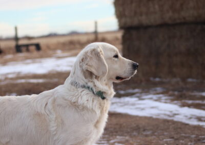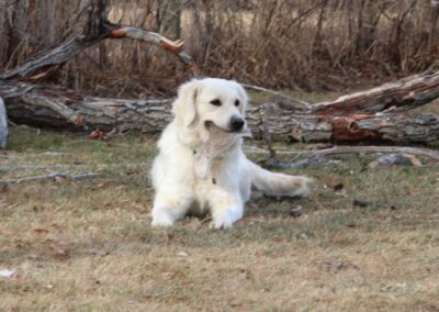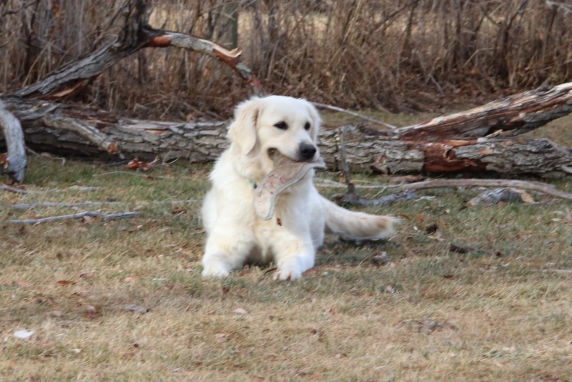 This girl came from Elkridge goldens. She has a blocky yet faminine head, short stocky biuld, nice medium coat. She is a medium drive. She loves people and is so soft and sweet with you.