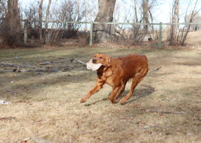 Teeter loves to play fetch, chase a ball and run after birds. She is timied with strangers